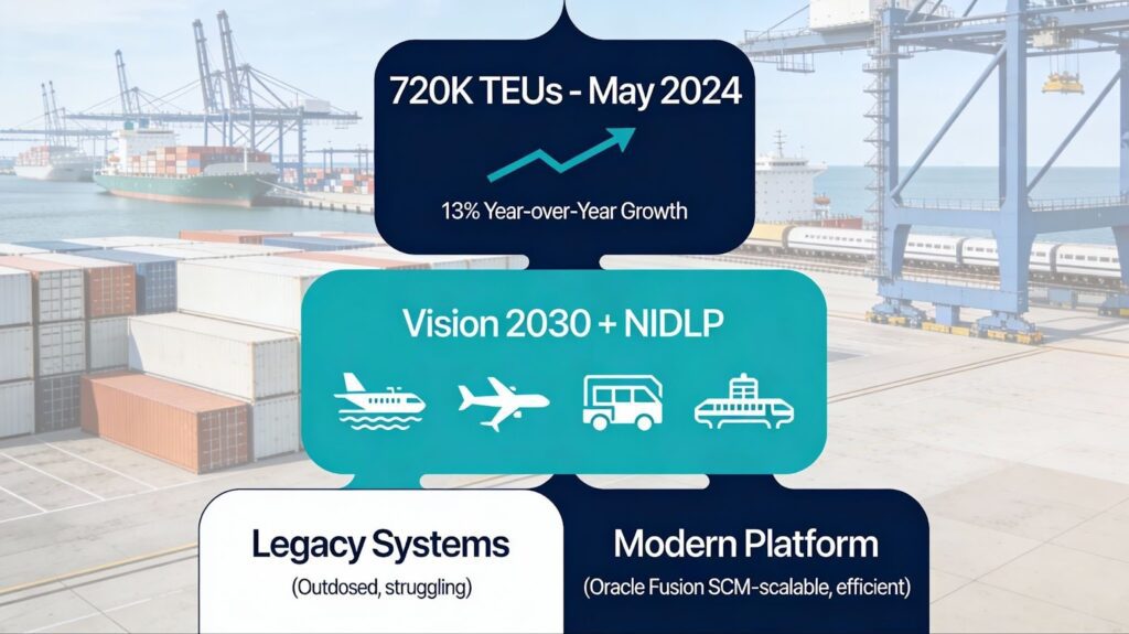 The UAE is building itself as a “Global Super-Connector” where cargo flows seamlessly across maritime, air, and rail infrastructure. This growth demands modern ports and terminals solutions, but your legacy systems weren’t designed for this scale or complexity. Oracle Fusion SCM isn’t optional anymore; it’s the difference between leading this growth or getting left behind.