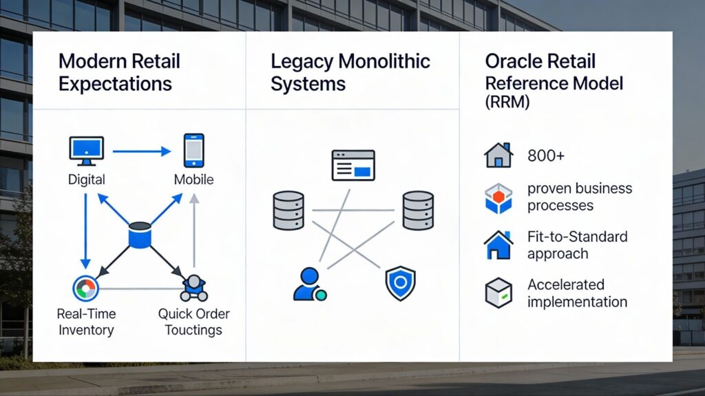 The Oracle Retail Reference Model (RRM) exists precisely because enterprises need better answers. This framework captures over 800 industry-leading business processes built from thousands of successful retail implementations. Rather than custom-building solutions, organizations using the RRM adopt proven “fit-to-standard” approaches that reduce implementation timelines and accelerate time-to-market for new capabilities.